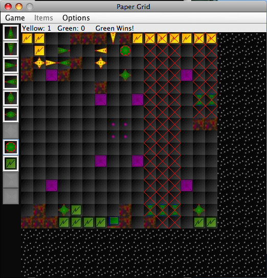 The game, which we called Paper Grid at the time since it was played on paper on a grid, was lost when we got a little older (and so paid attention in church). But then in 2004, after my Freshman year of college, I found the piece of paper where my brother had written down the rules. So I gave myself a challenge to write up a Java version of the game in a single day.