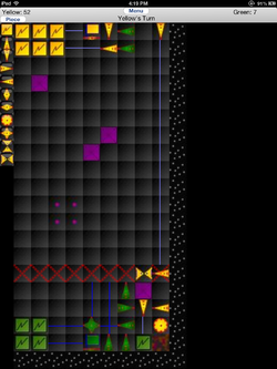 I did add some things. In play testing I got tired of always starting out the game by each player placing a couple power plants. Since my level format can hold any block in any location I decided why not start with some power plants already in there. Now this isn't completely new, since my Java version had a level that started with scramblers up to form a "frontier" (think "The Last Star Fighter"), which necessitated having a few power plants, but the player still started with zero power ready for use. These new levels I call "pre-set", for having both power plants and pieces in initial positions, and "pre-powered" for one where there are only power plants placed but they are blocked off so no one can attack them. Both options give strategic variations to the game.