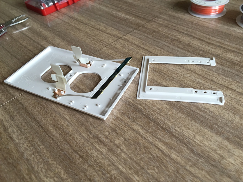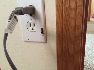 On the front, I used a bit of wood filler and wood glue to fill in some of the extra space in the hole I cut out. I'm sure there's something better to use for this, but that is what I had handy. I could probably also paint the switch white to match better if I had the right kind of paint but I don't. So this isn't the prettiest job, but it is functional.