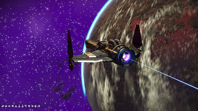 So when I found No Man's Sky it is easy to see how I would get sucked into it. It has the kind of adventure found in two of my favorite games but combined into one. I can explore planets, fly spaceships, upgrade and customize them, and build bases for industry or show.