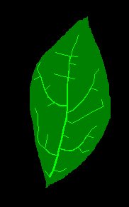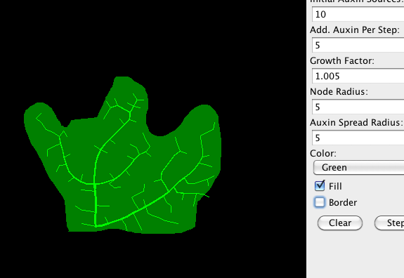 Runion's algorithm, described in Modeling and visualization of leaf venation patters (SIGGRAPH 2005) uses a biological model of leaf growth to generate realiztic venation patterns (the vein lines) in leaves. This algorithm models "auxin" sources, which are growth-promoting hormone sites, which cause veins to grow in that direction.Screenshots