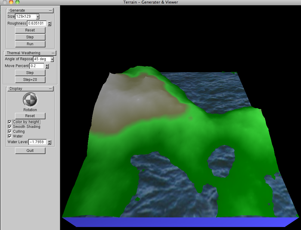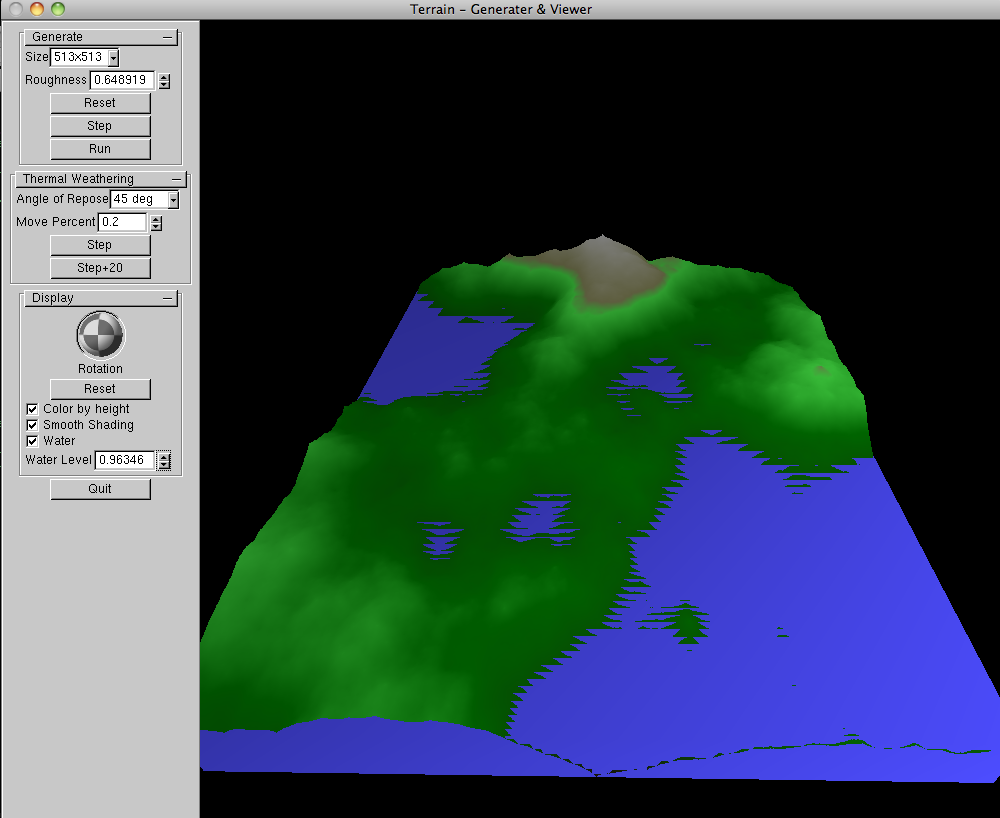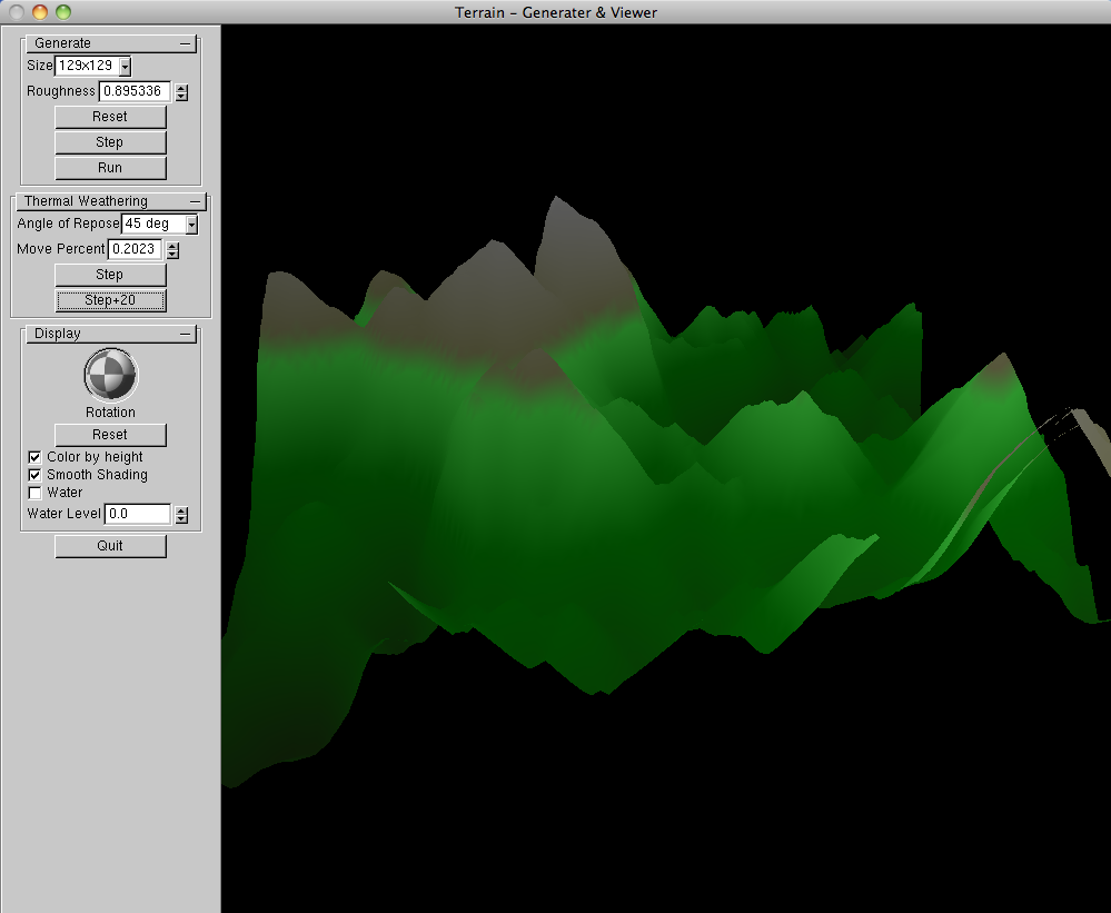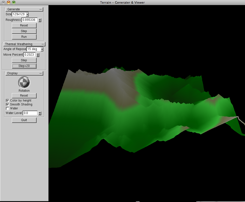 Some extra features were optional for the class:- Implement square-diamond terrain generation and display (85%)